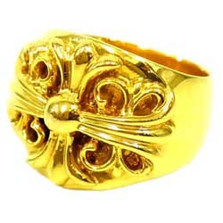クロムハーツの代表人気モデル「キーパーリング」の22K仕様のアイテムです。クロスとフローラルがモチーフになった優雅なデザインで着用時も着け心地の良く多くのファンを持つアイテムとなっております。ゴールドは純度の高い22金で存在感抜群のリングです。