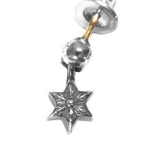 こちらは「クロムハーツ タイニースタードロップ ピアス」になります。流れ星のように揺れ動き、どこか眺めるだけで心惹かれる星のモチーフのピアスです。ドロップタイプのピアスの中でも、特に愛らしいフォルムと立体感あるな小さな星がまた、女性からとても高い人気で、「願い事が叶いますように」と大切な方へプレゼントしたいとファンを沸かせました。よくある平面的ではない、この星の形がファッション性もあり、ロマンティックな世界観を堪能できる逸品です。