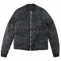 こちらは「クロムハーツ ダガー クロスボール ジップ キルティング レザー ジャケット」になります。キルティングレザー製でリブにはカシミア、裏地にはシルクを採用した贅沢なジャケットです。ポケットにはクロスボール、引き手にはダガーモチーフがあしらわれておりクロムハーツファンには堪らない逸品です。デザインとしては非常にシンプルですので、気軽にタウンユースで着用出来ます。