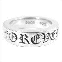こちらは「クロムハーツ アフター 1ダイヤ 6mm スペーサー リング フォーエバー シルバー」です。この「スペーサーリング」シリーズはメッセージの刻まれた、シンプルなデザインが特徴の指輪です。そのデザインから男女問わず身に付けられ、太さも3mm、6mmと選べます。恋人同士のペアリングだけでなく、婚約指輪としても選ばれることの多いリングです。