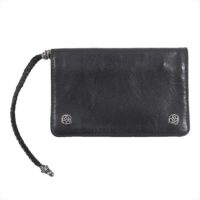 こちらは「クロムハーツ 2ZIP WALLTE ウォレット レザー ストラップ」になります。フローラルモチーフのボタンを使用した2つ折り財布です。収納部分はカード収納用のポケット1つと、ファスナー付きのポケット2つ、札入れが1箇所あります。また付属のレザーストラップが、アクセントになった上質なレザーウォレットです。