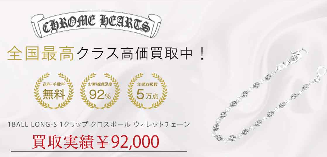 こちらの商品はクロムハーツの「2クリップ ショート クロスボール ウォレットチェーン」になります。クロムハーツでも人気の高いクロスボールデザインのウォレットチェーンです。中古市場でも安定して高額で取引されている人気商品ですので、全体的に使用感のあるお品物でしたが高額で買取らせていただきました。当店ではクロムハーツのウォレットチェーンを高額で買取しておりますので、是非ご依頼下さい。